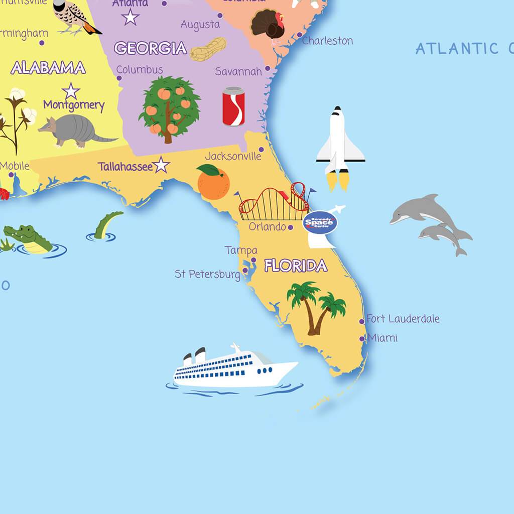 Florida Map For Kids – RIVERVIEW, Fla. — A couple in Florida has made it easier for people to find the best Christmas lights in their area. They created a detailed map with a catalog of hundreds of lit up houses and light . Thousands of invasive Burmese pythons have ravaged the Sunshine State’s native wildlife. Some question if hunting them is the right answer. .